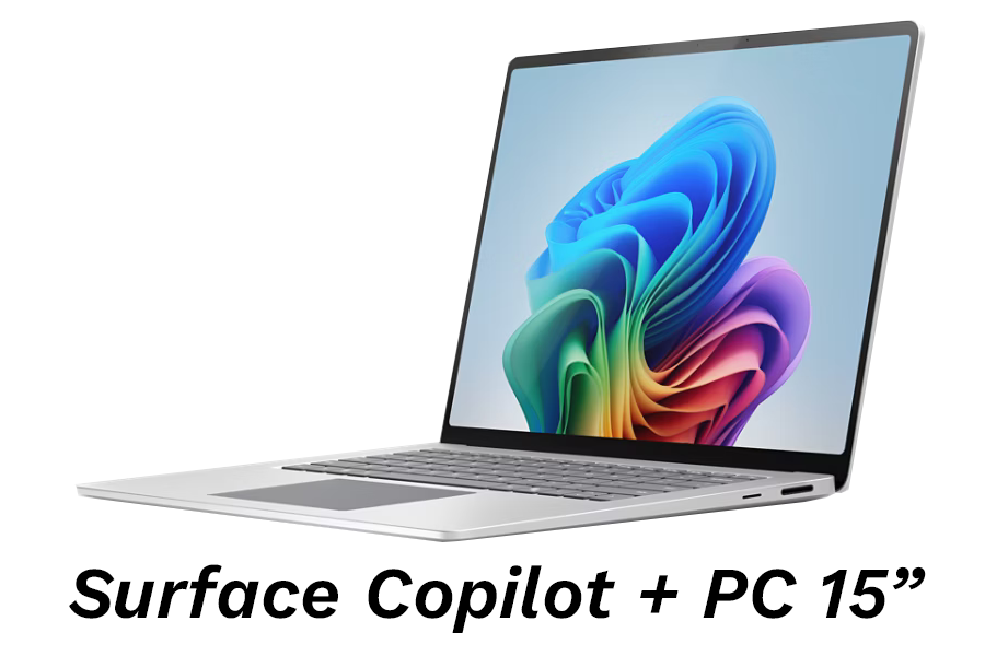 | Microsoft Suraface Laptop 15" Copilot + PC - Silver - CPU Snapdragon X Elite 12 Core - RAM 16GB LPDDR5x - SSD M2 1TB PCIe - Screen 15"(2496x1664) 120Hz - Windows 11 Home License - 1 Year Warranty | 1299$ |